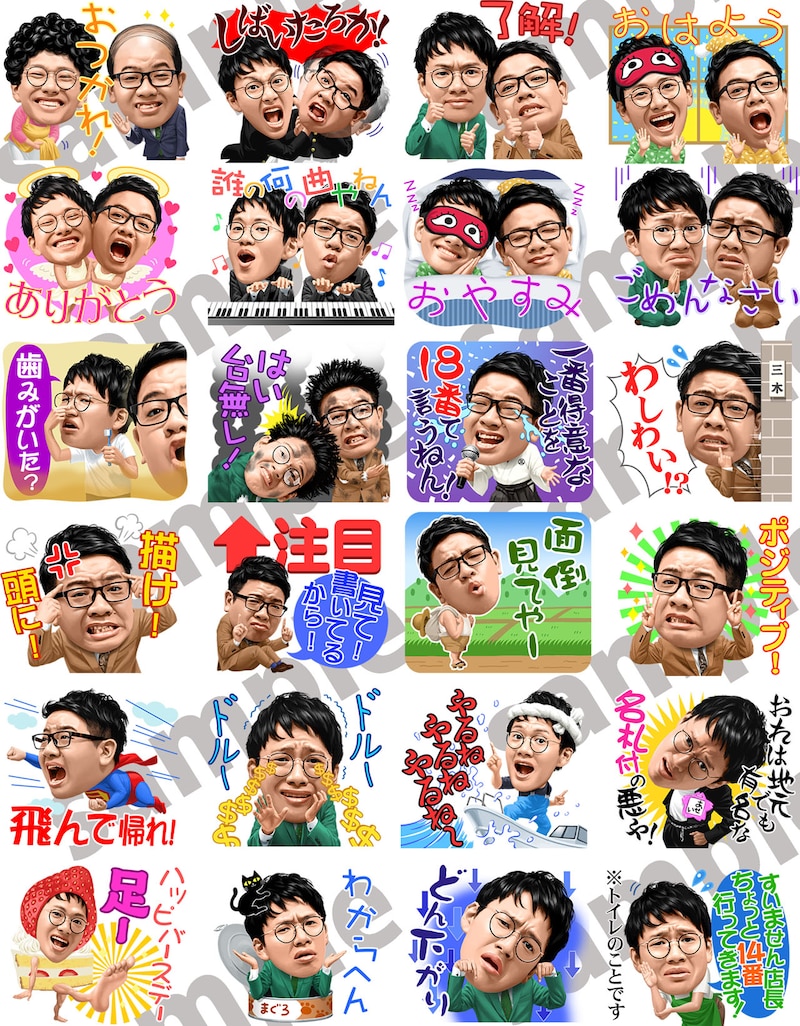 「おはよう」「おつかれ」といった日常的に使える言葉や、「誰のなんの曲やねん」「一番得意なことを18番て言うねん!」「わしわい!」「おれは地元でも有名な名札付きの悪や!」「ハッピーバースデー足」など、ミキの漫才に登場するセリフを収録した1セット24種。2人は「使いやすさとお手頃価格で販売させて頂きます!」(昴生)、「お気に入りはここにしかないギャグ『やるねやるねやるね』です!」(亜生)とコメントしている。
