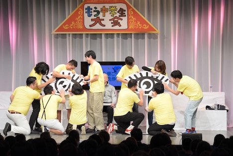 続く競技は「へい!らっしゃい!」の言い方がほかの出場者と同じようになってはいけないという、判断基準がひどく曖昧な「かぶっちゃダメよ!へい!らっしゃい!」や、大喜利的回答が求められているのか真剣に答えるべきなのかわからない「もう中クイズ」、答案用紙をろくろ首に覗かれてはいけない「ろくろ首のカンニングを防げ!」といったオリジナルのもの。装置もお手製で、もう中学生は左手に自作のろくろ首、右手にビデオカメラを構え、出場者の答案を撮影していく。不便そうに動き回るもう中学生に、安村は「ろくろ首にGoProを付けてるとかじゃないんだ!?」と驚き。後半、諦めたもう中学生はろくろ首を壁に立てかけ、ただビデオカメラを回す男と化す。そんなルール無用の空間を味わった永野は「元気だった頃のバラエティみたい」とこぼした。
