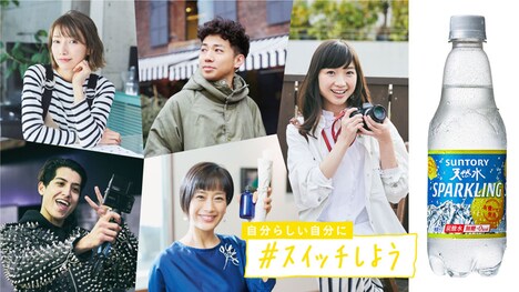 「サントリー 天然水スパークリング」のスペシャル動画「#スイッチしよう」は自分の考え方や生き方を“スイッチ”し、自分らしく輝く人の姿を描くシリーズ。その第2弾にはスターになることを志望してニューヨークへ渡った綾部のほか、タレントでベビーグッズのデザインなども手がける
