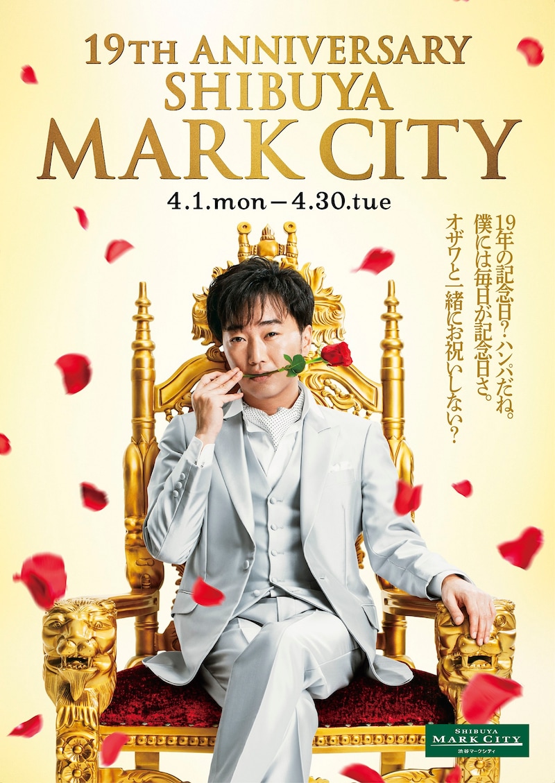 「渋谷マークシティ19周年アニバーサリーキャンペーン」は、複合施設・渋谷マークシティの開業19周年を記念したもの。4月1日から4月30日までの1カ月間、小沢のポスターや“キザな名言”が施設内のあらゆる場所に掲示される。またウエストモール4階のアベニュー広場には「小沢一敬×渋谷マークシティ 記念日フォトスポット」が登場。イーストモール1Fの電子看板には、小沢がハスキーな声でバースデーソングを歌う映像が流される。
