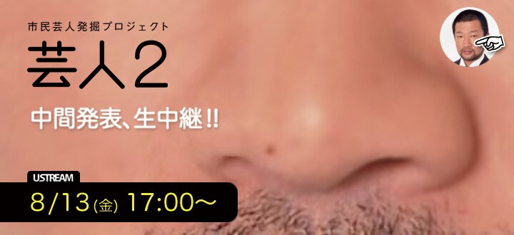 明日8月13日(金)17時より、市民芸人発掘プロジェクト「芸人2」Ustream生配信が行われ、