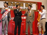 演説の後には、ナベアツと共同で監督を務めた柴田大輔が登場。4名は「吹石一恵や釈由美子といった女優がいる中、楽屋でエロ本を見るのが流行ったが、2人は全然反応してくれなかった」といったせつないエピソードを披露するなど、撮影の裏話で盛り上がった。