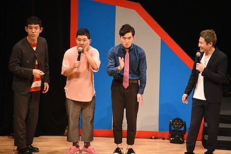 審査方法は、テレビ朝日の加地倫三氏、テレビ東京の佐久間宣行氏、「チコちゃんに叱られる!」(NHK総合)などを担当しているプロデューサー、演出家の小松純也氏、ワタナベエンターテインメント会長・吉田正樹氏の4名それぞれが票を投じる審査員票と得票数の多い順にポイントが付与される客席投票、同じく得票数順にポイントが与えられるAbemaTVの視聴者票を総合するというもの。生でネタを観てもらえるチャンスとあって、審査員たちを目の前にした出場者が「加地さーん!」「佐久間さーん!」などと愛嬌を振りまいてアピールするひと幕もあった。