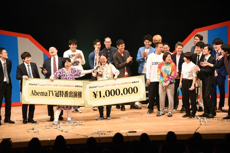 名前が呼ばれると、はなは信じられないといった表情でしばらくポカンとし、しょうこは天を仰いでこみ上げる思いを押さえきれない。そんな2人をハナコやほかの出場者たちが祝福。しょうこが涙をこらえながら「ハナコさんが優勝したとき……キングオブコントも優勝したじゃないですか……。だからっ……」と語りだすと、Aマッソ加納がキレよく「もうええわ!」とツッコミを入れて大きな笑いを誘った。