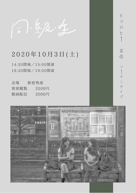 ヒコロヒー・吉住のツーマンライブ「同・級・生」
