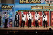 戦略について質問されると、「R-1」を調べ尽くしているというゆりやんが「出順をXとして、ネタ尺をYとします」と何やら計算をスタート。お決まりの「わかりません!」という言葉を合図に全員でこけ、ファイナリスト同士の結束を深める。さらにゆりやんは「お尻の筋肉は誰にも負けません」と尻を突き出したかと思えば、盛大な屁の音を出して「すいません……!」と一連のボケを披露。続いてkentoも「毛深さでは負けない」と言いながら、同じように屁の音を出してみせた。これらに高田が「匂いますね」とコメントを添え、オチをつけるというノリが即興で完成。小田が「わけわからんノリを展開さすな!」とツッコむ中、3人はお辞儀したり手を合わせたりしてそれぞれの役割を労っていた。