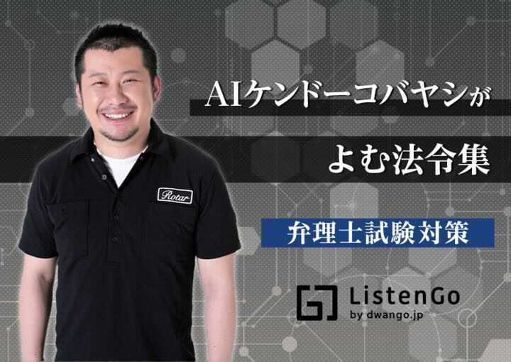 これは、いい声の著名人のAIを用いたプロジェクト「e声(いいこえ)シリーズ」の第1弾。弁理士の資格取得に役立つ法令集が、ケンドーコバヤシの声で読み上げられる。