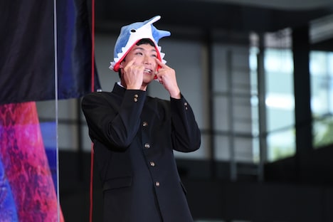 なお、同作はR15+指定作品。もう中は「学校に乱れると書いて、学ラン」という学生服を着用しており、そのこともしっかりアピールした。巨大怪獣の展示イベントは8月9日(月・振休)まで、同所にて。