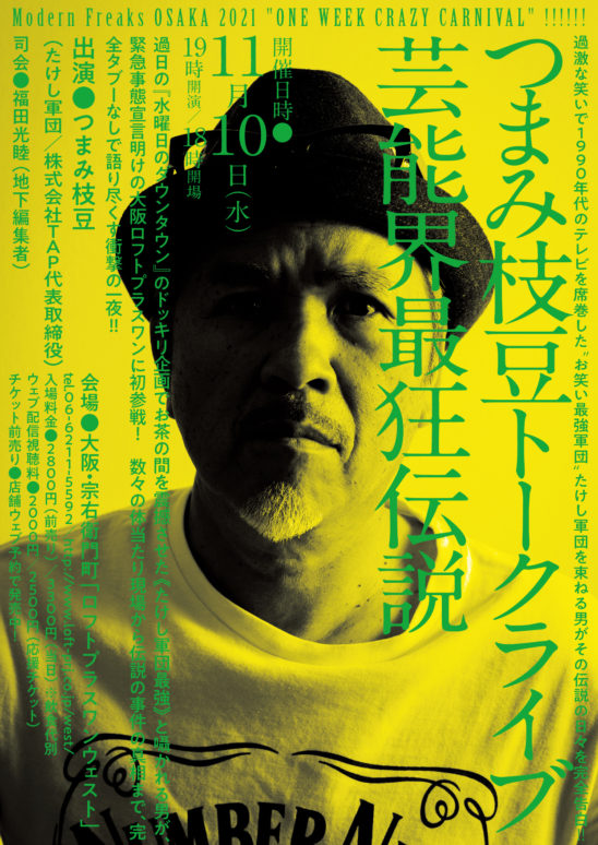 「つまみ枝豆トークライブ 芸能界最狂伝説」が11月10日(水)に大阪・ロフトプラスワン ウエストで開催され、有料配信も行われる。