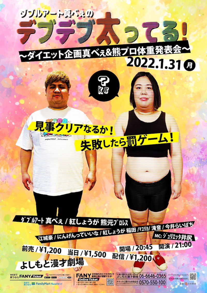 「ダブルアート真べぇのデブデブ太ってる」はダブルアート真べぇが展開しているYouTubeチャンネル。真べぇは半年間でマイナス30kgのダイエットに成功した様子を伝えており、さらに103kgから85kgまでの15kgを落とすことを目指して奮闘中だ。イベントではこの真べぇの成果と、同じくダイエットに挑戦している