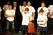 松竹芸能では東北関東大震災に際して、「所属タレントの芸能活動を通じて、人々に幸せと感動と勇気を与えることを使命」とし、全社員、全タレントが一丸となりさまざまな取り組みを実施。今回は来月5月14日に新たににオープンする劇場「松竹芸能 新宿 角座」にて、入場無料のチャリティライブを行った。