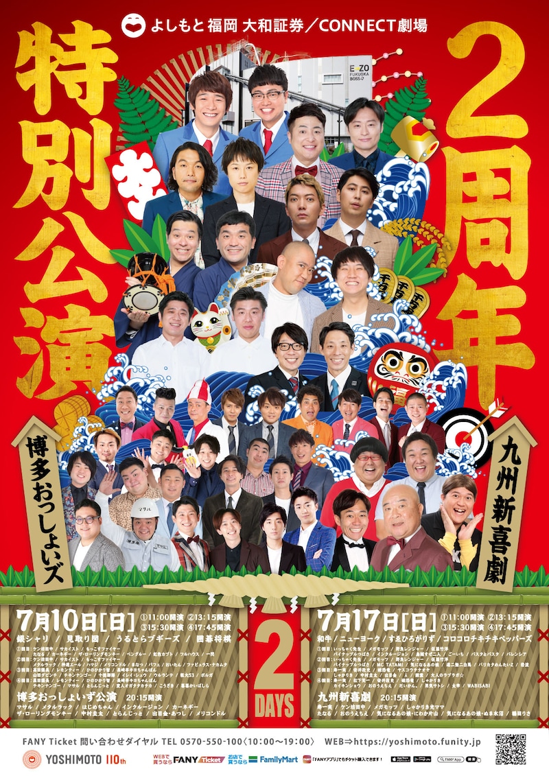 7月31日(日)に2周年を迎える福岡・よしもと福岡 大和証券/CONNECT劇場。これを記念し、7月10日(日)、17日(日)に特別公演を開催する。