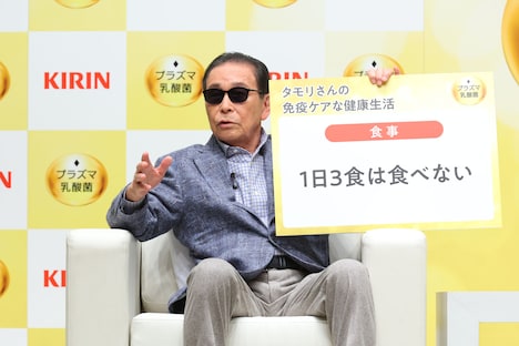 健康の秘訣を聞かれると、「寝たいときに寝る」「1日3食は食べない」「散歩の際は足を少し上げて歩くように心がける」と自身の生活を紹介。「眠たいから寝る。それだけですよね。歳をとってアルコールが弱くなりまして。晩酌で飲んでいるとだいたい昔からそこから調子に乗ってくるんですが、調子に乗れないんですよ」と話し、「眠いですよ、本当に(笑)」と心の声に従っているだけなのだとか。食事については「長い間『(笑って)いいとも!』やってまして、昼食の時間が2時か3時。それだともう夜はあまり食べられないので、必然的に2食でした。その習慣が抜けない。朝はしっかりしたものを食べて、夜はつまみ程度ですから1食半くらいか」と振り返る。「朝からすき焼きを食べることもあります。重たいものは朝食べる」と明かした。