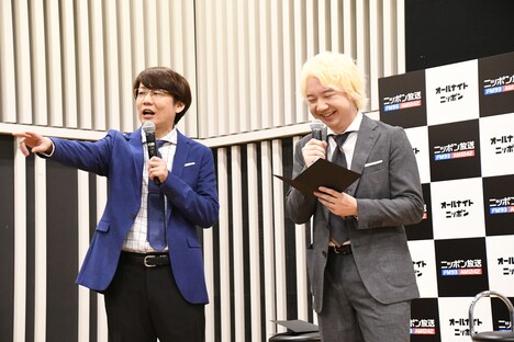 「三四郎のオールナイトニッポン0」は2015年3月にスタート。曜日変更や「オールナイトニッポン」への移動などを経て、4月から9年目に突入する。ステージに登場した三四郎・小宮は「僕らが司会ってことは、盤石ですね」とにやり。番組継続、もしくはかつてレギュラー出演していた1部(「オールナイトニッポン」)への返り咲きを匂わせる。一方相田は「担当番組なしってこともあるかもしれない」とよくないほうの展開をチラつかせ、会見の生配信を見ているリスナーの期待を煽ってみせた。