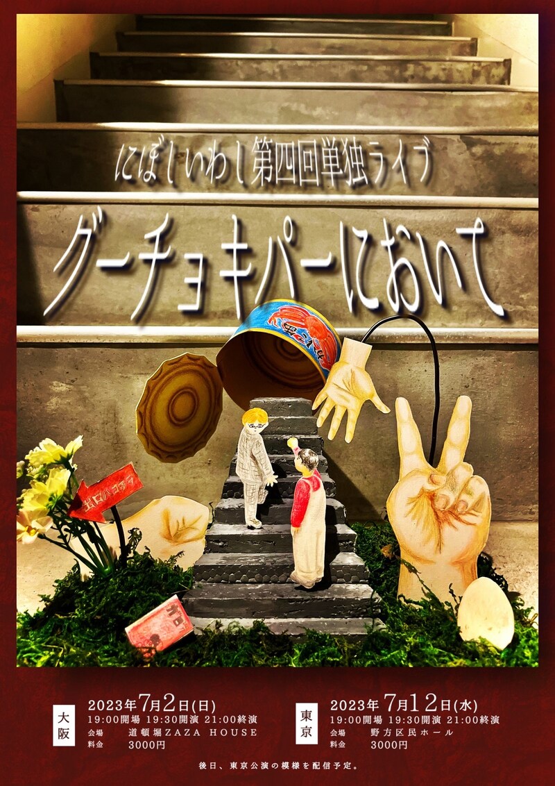 前回の「超!ネックル危機一髪」から約1年3カ月ぶりとなる単独ライブ。「登る」がテーマの今回もネタ、映像、音楽、小道具、グッズデザイン、演出すべてをにぼしいわしが自ら手がける。なお東京公演は後日配信も行われる予定だ。