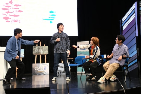 尼神インター誠子は「数字を見ると危機がより実感できましたし、今日からできることなので、取り組もうと思いました」と女優然とした立ちふるまいでコメント。渚は「過去にも(MSCジャパンのイベントに)参加して教えていただいたのに、すっかり忘れていた。全部すっからかんだった」と隠さず明かし、「今日でしっかり忘れないためにMSC認証ラベルのタトゥー入れます」と記憶をどうにか刻み込みたいと語る。田中は「ゆっくり(MSCラベルの)知名度も上がってきている。どうしても難しい話なんですが、これだけのメンバーなので柔らかく、笑いを交えて伝えてくれた」と感謝を述べつつ、「きむ以外が」と講義中のさまざまなきむの失態を改めて振り返った。