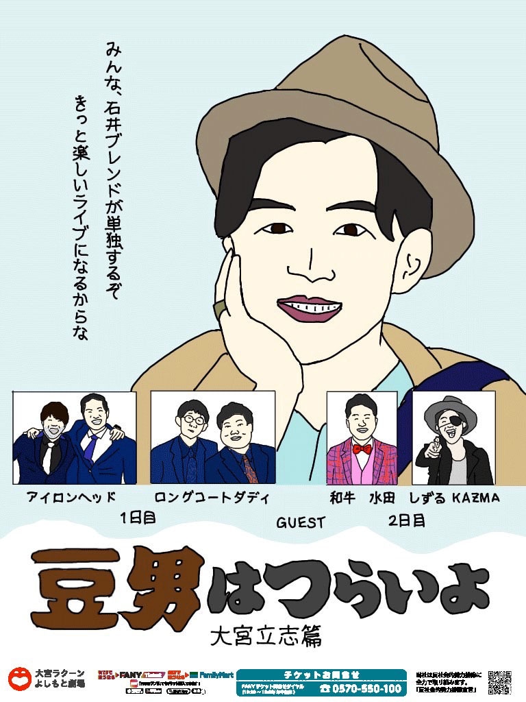 石井ブレンドの単独ライブ「豆男はつらいよ 大宮立志篇」が9月23日(土・祝)と翌24日(日)に埼玉・大宮ラクーンよしもと劇場で開催される。