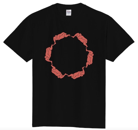 人と人が相手の肛門を嗅ぎ合う様子。自分のほうが臭くないことを証明するために相手のケツを嗅ぎます。ポップなイラストにすることにこだわりました。このTシャツが古着屋のレジ奥にあったらセンスある店だと思わせることができる一品です。