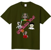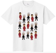 自分の背中にタトゥーで入れようと思ってたものをTシャツにしました。レゲエの神様、漫画の神様、バスケの神様、代打の神様を一同に会しました。神様の配置(上座に誰を置くか)にこだわりました。