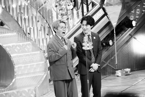 ナインティナインと渋谷凪咲がMCを務める中、芸人たちがネタ祭りを繰り広げる「ENGEIグランドスラム」。「THE SECOND~漫才トーナメント」王者のギャロップ、「ツギクル芸人グランプリ2023」王者のナイチンゲールダンスは初登場を果たす。彼らは出演者に渡されるバッジを誇ったほか、舞台装置のせり上がりへの戸惑いや、共に縁があるナイナイとのうれしい共演エピソードなどを語った。