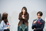 稲田は、瞳と修一が働くTKGカンパニー新規事業イベント推進部の社員・真島明日香役。明日香との共通点を聞かれると、「演技指導がなく、私だけ私のままなんです。すっごい喜んだり、すっごい笑ったり、急に怒るところが私そのまま。感情のまま生きてる役」と説明した。一方で、ほかのキャストから「言いづらそうなセリフがあった」と話を振られ、「ナイッスゥー!」と言いながらテンション高めにグッドのサインをした手を挙げる動作を恥ずかしそうに披露する場面も。「ナイッスーとか言わないんですよ、私。言えない。上に手を挙げるってことが恥ずいんです。脇甘いのってめっちゃ恥ずいじゃないですか」と渋い顔をしていると、鈴木や片寄から「そのシーンのあと稲田さん、めちゃくちゃ真顔、この世の終わりみたいな顔になってた(笑)」とイジられた。