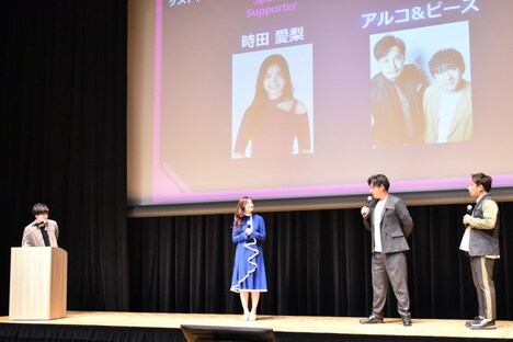 なお本日の発表会にはスペシャルサポーターとして時田愛梨、MCとして元テレビ東京アナウンサーの田口尚平も登壇した。アルピーと田口アナは「勇者ああああ」で共演が多かった間柄。酒井がかつて「R-1ぐらんぷり」に出ていたことを田口アナに振られると、酒井は軽くツッコみながらも「隣に平子さんがいないと心が苦しかった。1回戦に落ち続けて、それでも挑戦し続けていました」と振り返り、平子は「その気持の強さを評価して今でも組んでいます」と酒井を評価した。
