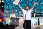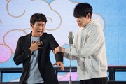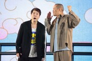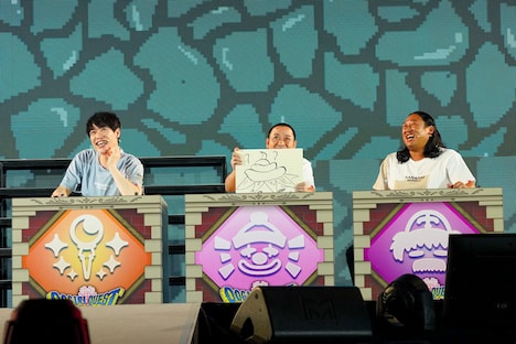 RPG風の演出でスタートした大喜利ステージは、大喜利の力でモンスターを倒していく「OOGIRI QUEST」として展開された。大喜利戦士たちが「華大どんたく」Tシャツを着用する中、司会のノブだけが勇者の格好。「恥ずかしくて死にそうです! 漫才とかやるって聞いてました。到着したらこの衣装が用意されてました! すごい世界観です!」と恥ずかしさを払拭するように大声で言い放つ。
