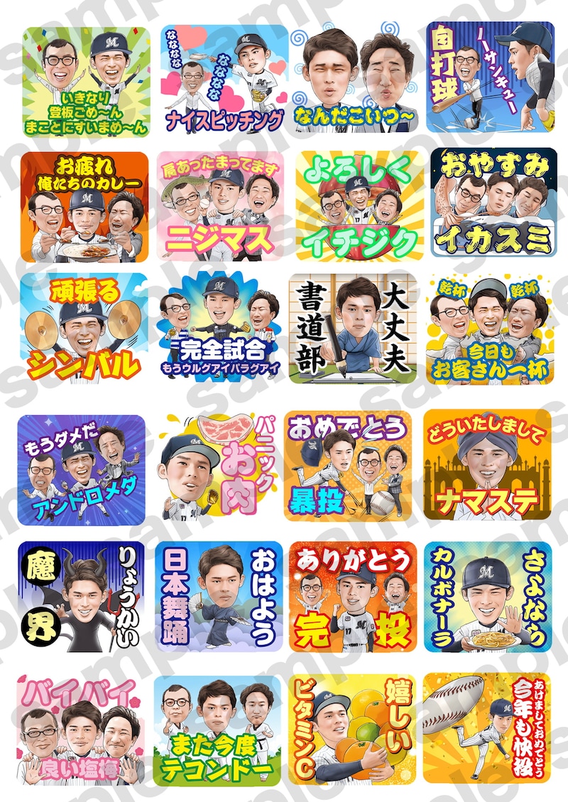 佐々木選手がジョイマンのファンを公言していることから今回のコラボが実現。以前よりジョイマンのスタンプを愛用していたという佐々木選手が自ら監修しており、「なななな なななな ナイスピッチング」「おめでとう 暴投」「完全試合 もうウルグアイパラグアイ」など24種類のフレーズが収録される。