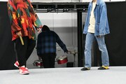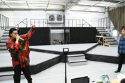 稽古場に姿を現した盛山は、石田と和やかに軽く打ち合わせしたあと、そのままラフな雰囲気でKing Boyとのフリースタイルバトルシーンを開始。その場で目についたものを素早くリリックに取り込む手練れの技を見せつつ、相手にも切りかかっていく見応えある掛け合いを演じてみせる。途中で音楽が途切れてしまってもアカペラでラップ合戦。そんな2人の頼もしい様子を石田も感心しながら眺めた。