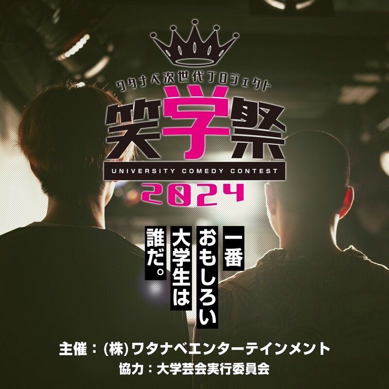 ワタナベエンターテインメントの大規模オーディション「ワタナベ次世代プロジェクト『LIVE!』2024」の第1弾として行われる「笑学祭」は事務所や養成所に属していない現役の大学生であれば、お笑いサークル所属有無に限らずエントリーできる大会。530組がエントリーした予選が5月1日から5月8日まで行われ、ナユタ、ピ夜、鯖のTシャツ、ミックストマトジュース、乙女ブレンド、暁天、ベロニカは死ぬことにした、佐藤MANブラザーズバンドら26組が準決勝に進出した。