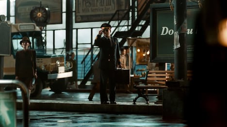 ティアドロップ型のサングラスを外す自身のプレイバックを見ながら、「颯爽としていないよね(笑)」とこぼす飯塚。しかし監督からハリウッドスター風の演技をリクエストされ、カメラが回っている間は“デキる男”の役になりきった。