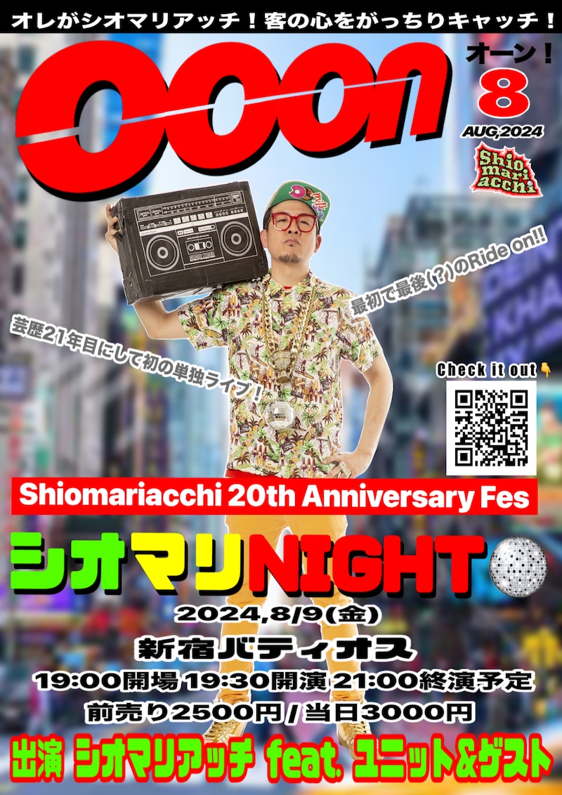 この度芸歴20周年を記念して初単独ライブ「シオマリNIGHT」を開催します! 恥ずかしながら人生初の単独ライブになります! そして最初で最後になるかもしれません!(笑) ネタは代表作のリズムフリップネタ、ニュースタイルの映像を使ったネタ、そして普段やらないコントにも元ゾフィー上田航平くんなど鬼アツ作家陣を迎えチャレンジしていきます! オーン! 子供から大人まで幅広い層に楽しんでもらえる内容になってますので、ぜひたくさんのシオマリヘッズの方にご来ドーンいただきたいです! ぜひとも皆様! 一緒に楽しみまSHOW! お待ちしております!