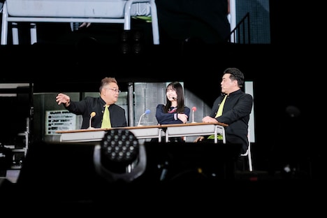 ナイナイが現れたのは「デザイン部」のコーナー。久保が黒子から1つずつアイテムを手渡されながらイベント用に作ったグッズを紹介する流れで、なぜか今回のグッズラインナップには入っていない“パクチーの写真”が入ったTシャツが紛れ込む。そして昨年行われた「ナインティナインのオールナイトニッポン歌謡祭」のグッズが続々と出てきたことで、黒子の正体が岡村であることが判明。矢部もステージに姿を見せ、「サンドウィッチマンとのコントも見てたよ」と舞台袖で久保の勇姿を見ていたと話し、久保と観客を「えー!」と驚かせた。
