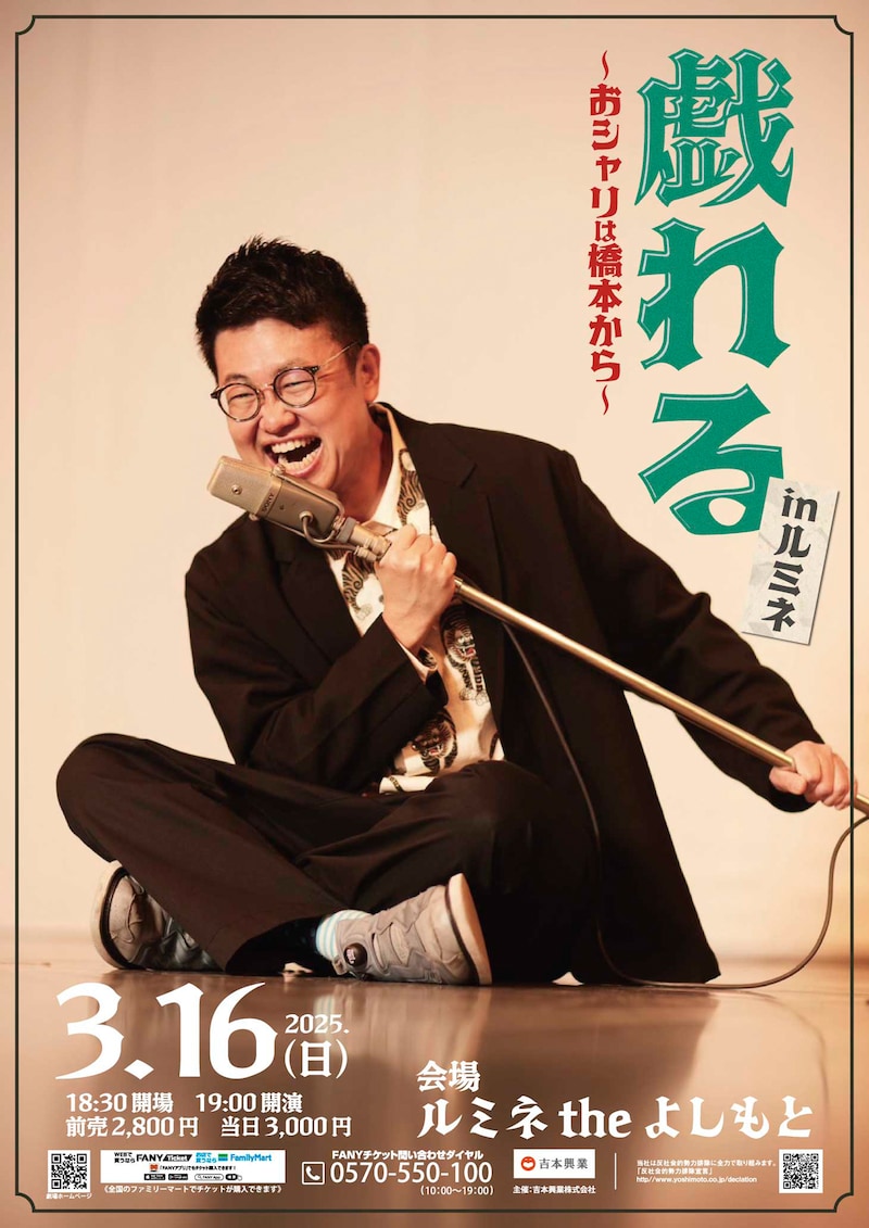 これまで東京、大阪、福岡、兵庫で実施されてきた橋本のトークライブが初めてルミネtheよしもとで行われることに。彼は「まさかルミネで開催させていただける日が来るとは! 日常の些細な事にツッコミまくりますので、細かいところが気になり過ぎているかもしれませんが、過剰でうるさいツッコミをぜひ大量に浴びてストレス発散して帰ってください!!」と呼びかけた。