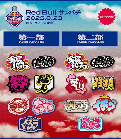 今週末8月23日(土)に大阪・EXPO'70パビリオン別館で開催される「Red Bull サンパチ」の全出演者が発表された。