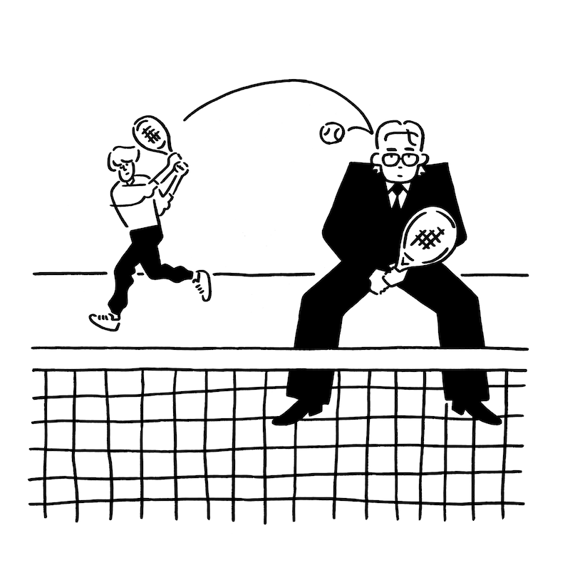 なお「くるま蓮見ペア」のキービジュアルはイラストレーター・長場雄が担当。くるまと蓮見がテニスのペアを組んでいる様子が描かれている。
