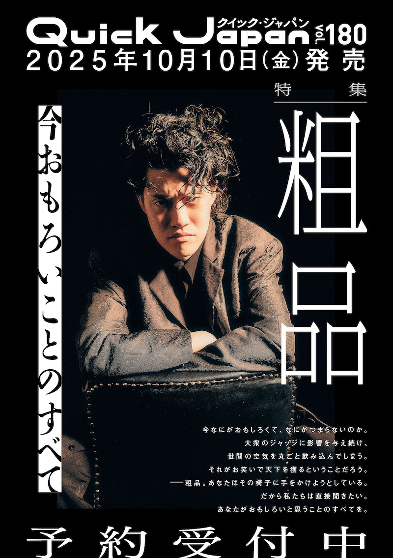 鋭利な発言で世間を賑わす一方で、芸人界でも存在感を発揮し続ける粗品。今年開催された「第14回ytv漫才新人賞決定戦」では自身初めての審査員を務め、的確なコメントで注目を集めた。「なにがおもしろいのか、おもしろくないのか」のジャッジに大きな影響を与え、世間の空気をも飲み込んでしまうのが「天下を獲る」ということだとしたら、粗品は今、その椅子に手をかけようとしているのではないか。そう考える「Quick Japan」編集部が、粗品に「笑い」についてだけを聞くロングインタビューを実施した。