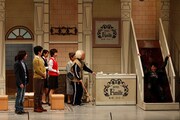 寺脇が、舞台に設えられている“茂造が杖で叩くと滑り台になる階段”を指さし「階段から落ちたい」とリクエストし初挑戦。また伊賀健二の新幹線ネタでは、吉本新喜劇メンバーとともに、“連結”するなどノリノリに。さらに末成由美が舞台に登場し、いつもの「ごめんやっしゃ」のギャグをすると、3人も見事までのコケっぷりを見せ会場を沸かせた。「吉本新喜劇を見て育った」という寺脇は、予定にはない動きで前へ前へ。辻本から「僕より目立つな!」とツッコまれる場面も。最後は「夢のような舞台に立てた」と満足げな表情を浮かべた。