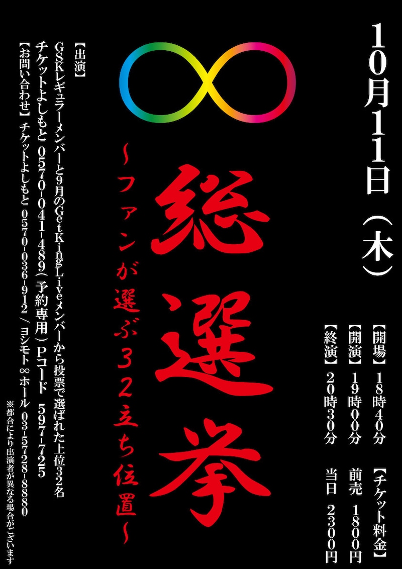 同劇場では9月1日より、GSK(G7、S7、K7)レギュラーメンバーと9月のGet King Liveメンバー総勢359名を対象にした人気投票を実施。この投票結果TOP50を同ライブにて発表した。