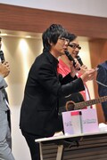 その後は、劇団ひとり、東京03飯塚・豊本、早見あかりが合流し、角田がこのイベントのために用意してきた曲を披露する流れに。ところが、その歌には魂がこもっていないとメンバーからダメ出しされてしまった。気を取り直してほかの曲を魂込めて演奏する角田だったが、ステージ脇からバカリズムがじりじりと忍び寄る。そして角田が大きな口を開けた絶好のタイミングで自分の靴をその口の中につっこむと、会場は大きく盛り上がった。