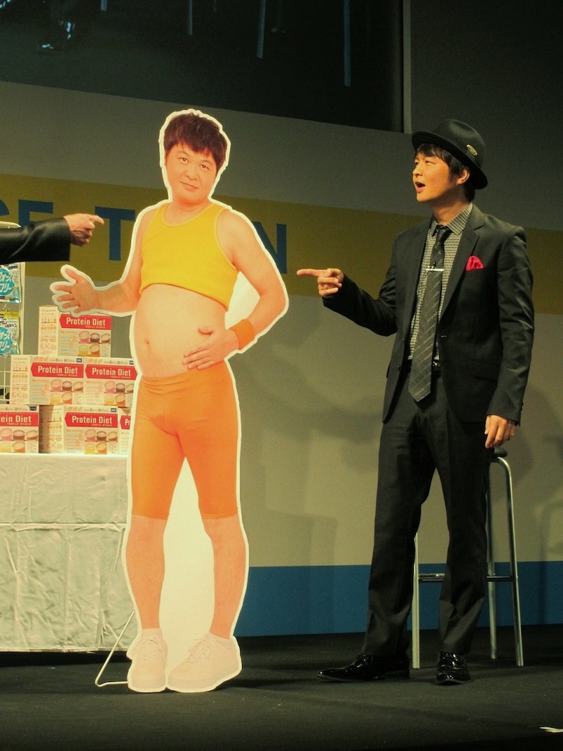 そこに「どーも男前芸人です!」とダイエットに成功したという共通点があるQ太郎と山里が投げキッスをしながら登場。松田から「恥ずかしくないの?」と言われると、Q太郎は「自信しかない」と宣言するも、山里は「お客さんの顔は見れません。膝が震える」と客席を見ないように気を付けた。その山里は、このDHCダイエットで17kgの減量に成功。「辛い思いをひとつもせずに痩せていくから楽しい」と大喜びしつつ、「ただ痩せてもモテるまでつながってない。外見じゃなくて、内面じゃないかと。内面の商品はないですかね?」とスタッフに尋ねていた。