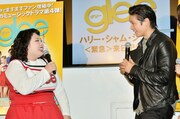 渡辺が「glee」のPRイベントに登場するのは3回目。会見にチアリーダーの装いで姿を見せると、ビヨンセの「Crazy in Love」に乗せて迫力のあるダンスパフォーマンスを披露した。本物のビヨンセを知るハリーは、和製ビヨンセ・渡辺のパフォーマンスに終始にこやかな表情。「ポーズが最高でした。すごくよかったですよ。アリガトウゴザイマス」と日本語を交えて温かいコメントを残した。