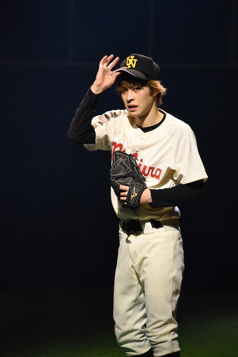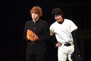 西銘は役の上でバッテリーを組む猪野について「アドリブを出してもすぐにツッコんでくれるし、阿部として引っ張ってくれるんです。三橋と同じく、僕も猪野くんに引っ張ってもらっている。現実でも三橋と阿部みたいに感じています」と自分たちを役柄に重ねる。一方の猪野は「稽古が始まった頃、積極的に仲よくならなきゃと思ったんですけど、駿が人懐っこいので、結局彼のペースに飲み込まれて、あかん負けれられへんなって(笑)。いじったり、“すべらない話”をやったり、ワキャワキャやってました」と、仲のよさをアピールした。