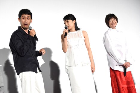 一家の父である龍吉を演じたキム・サンホの提案で、現場では家族役のキャストだけで食事をすることもあったという。登壇者の中で、唯一家族の一員ではない豊役の大谷が「キム・サンホさんが家族の輪をとても大事にされていて。この中だと僕だけ仲間に入れてもらえなかったんですよ」とこぼすと、大泉は「そんなことはないでしょ。早く帰っただけじゃないの?」とツッコミを入れる。笑顔で否定する大谷に、大泉は「あんた、間男じゃないの!」と切り返し、会場を沸かせた。