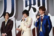 鈴木は撮影を振り返り、「舞台と違って、映画の撮影ではセットが360度広がっていたり、砂利道では戦いづらかったり……いろいろなことを初めて体感しました」と述懐。今作で初めて「刀剣乱舞」シリーズに参加した日本号役の岩永が、撮影初日に自身が使用する槍を折ってしまったことを明かすと、和田が「あのとき、地獄みたいな表情をしていて怖かった(笑)」と答えて会場の笑いを誘った。