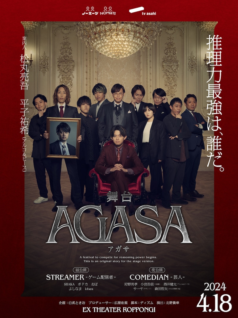 案内人は松丸亮吾・アルピー平子、舞台「AGASA」で狩野英孝らが“推理力最強”の座を競う https://t.co/58tWfnrYNI