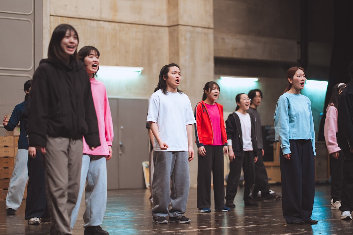 2月下旬、「アンサンブルデイズ」初日の3週間前、稽古場を取材した。CAS生たちにとっては稽古場であり、本番のステージとなるシアターコクーンの舞台上にはキーボードが置かれ、歌唱指導の蔵田みどり、音楽を手掛けた杉田未央が見守る中、歌のレッスンが行われていた。「よみがえれ○○」という歌詞が繰り返される後半のナンバーで、蔵田は「全部をベタッと同じように歌わないように、『よみがえれ』の後にくる○○の部分を、それぞれちゃんとイメージしながら歌いたい」と説明する。CAS生たちを鼓舞するように、蔵田の指揮にも力が入るが、あまり劇的な変化はない。
