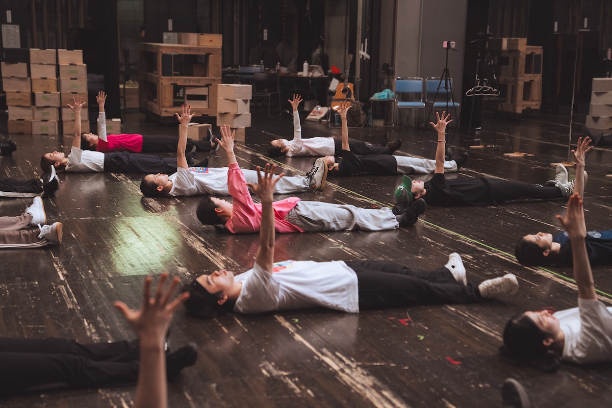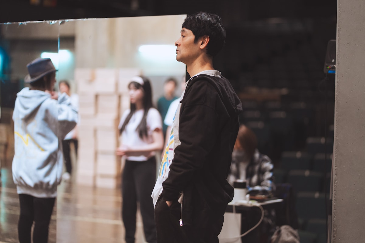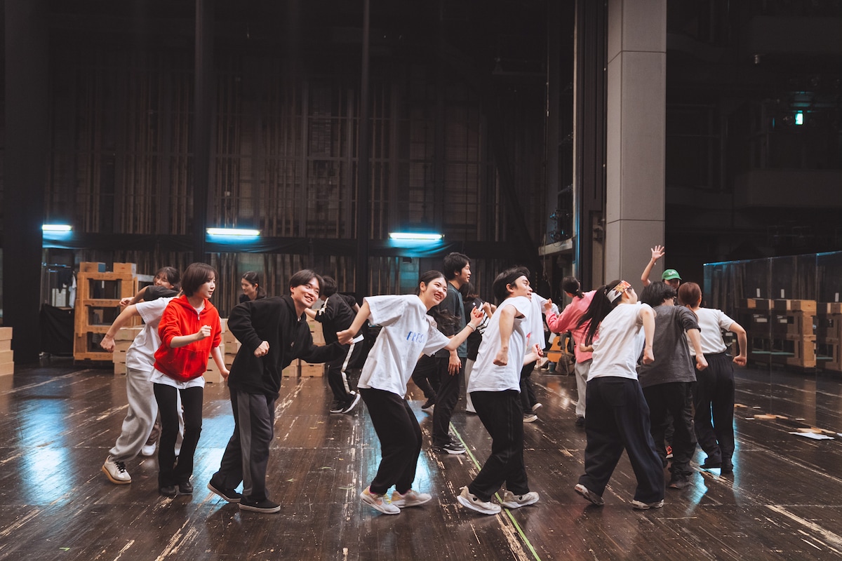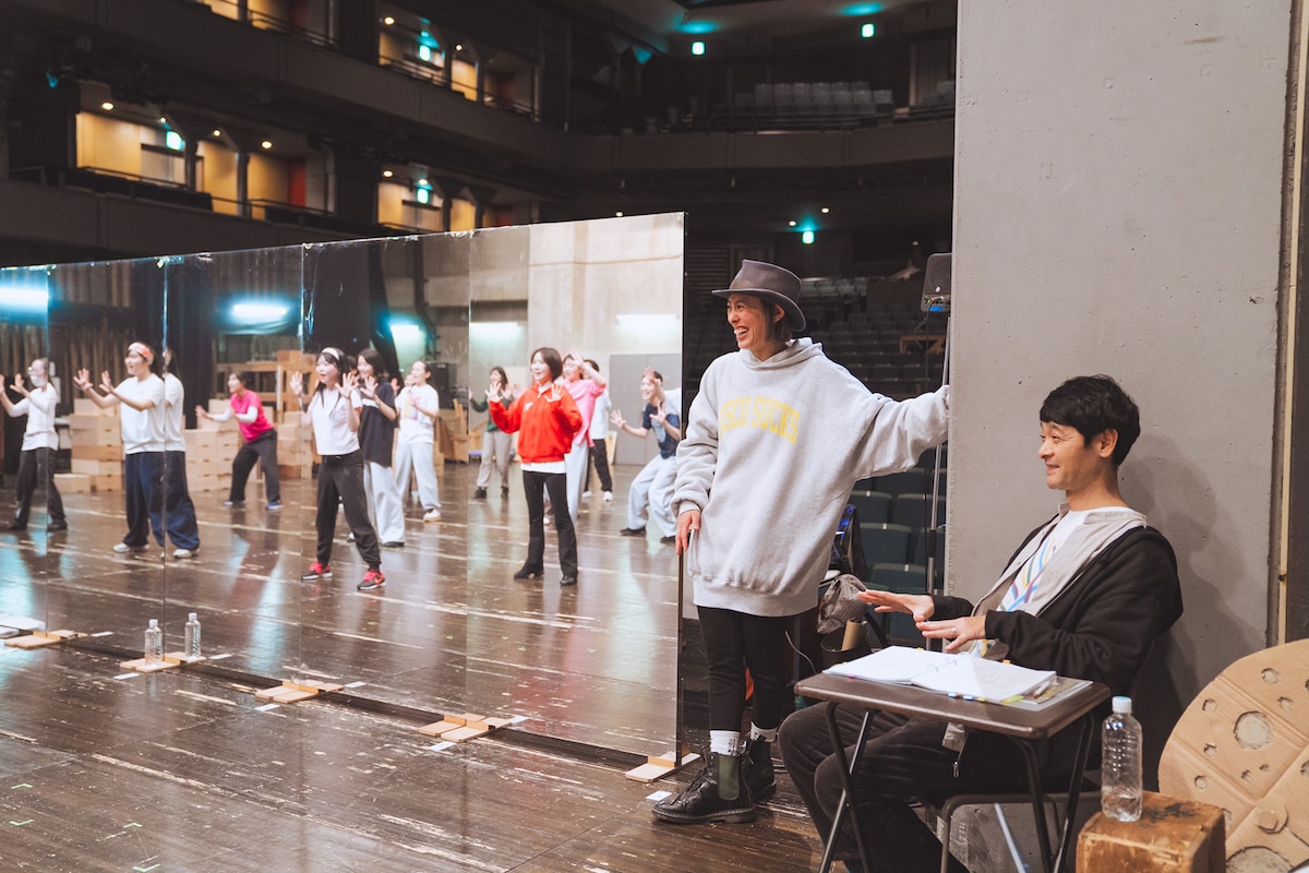 あるシーンでは箱馬を空中でパスして、それをタワー上に積み上げていった。歌、踊り、さらに別の人と連携した動きを行うのはかなり大変な作業で、CAS生たちの表情も真剣さを増す。air:manはCAS生たちから出た意見を取り入れつつ、動きの微調整を繰り返していったが、何度目かでピタッと動きがハマり、「良き良き良き!」とair:manが笑顔を見せ、CAS生たちもパッと明るい表情を見せた。air:manがノゾエに「箱馬いいですね。動きにスピード感が出て、とてもいいです」と笑顔を向けると、ノゾエも笑顔で大きくうなずいた。