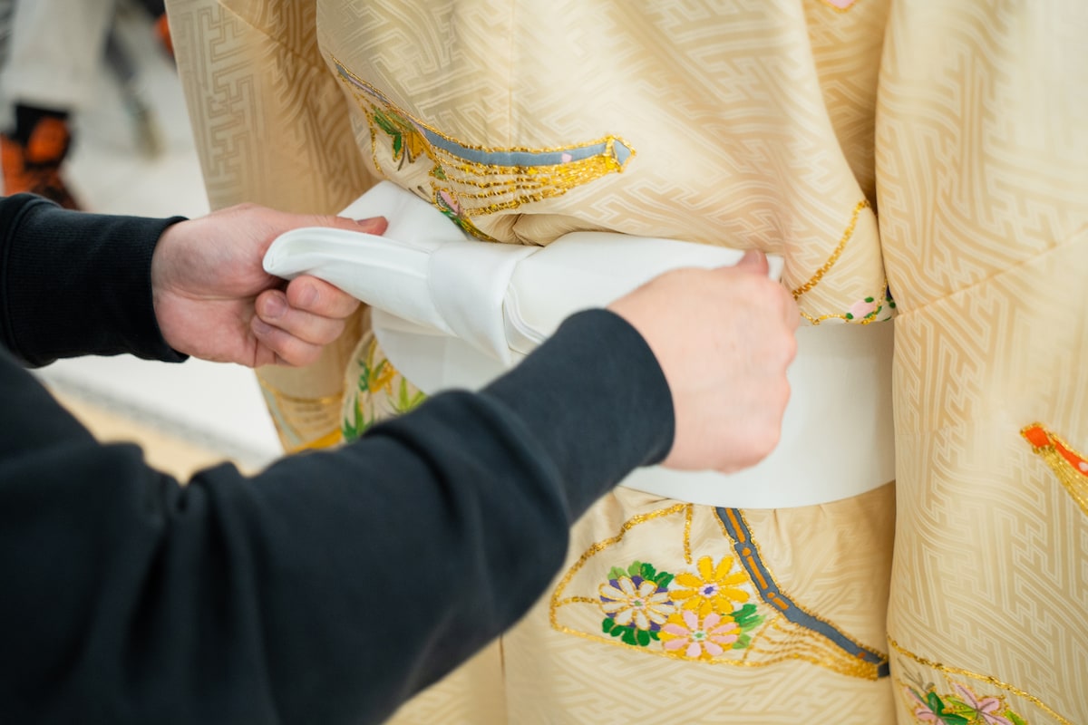 今回見学していて改めて驚いたのは、「連獅子」では身体を大きく見せるため、衣裳の下にもたくさん着込んでいること。最後に、豪華に輝く金糸や銀糸が織り込まれ、ずっしりとした「唐織」、そして「大口」と呼ばれる大きな袴を身につけ、さらに重さは倍増。この状態で1時間近く踊る歌舞伎役者の身体能力に改めて驚く。