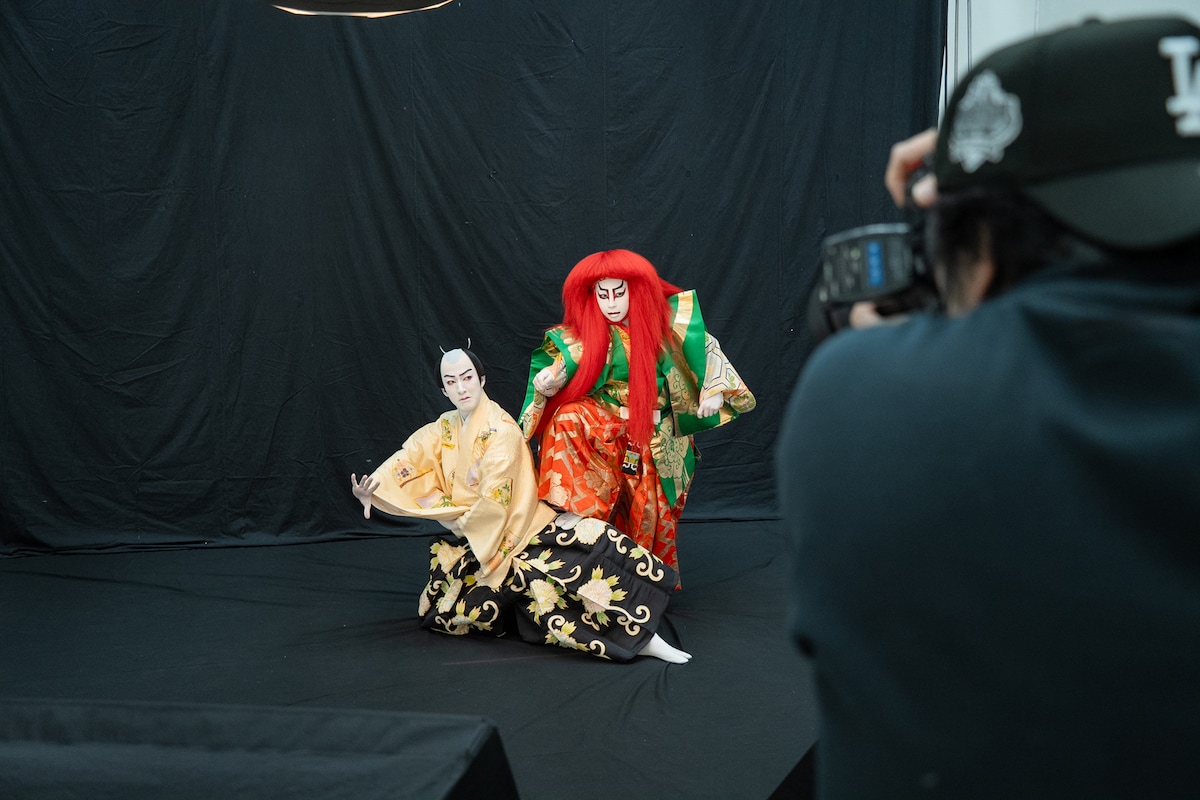 2月末、尾上右近&尾上眞秀による「連獅子」のビジュアル撮影が行われた。「連獅子」は実にさまざまな宣伝ビジュアルが存在する演目だが、今回は、まだ誰も見たことのないポスターデザインを目指すとか……! この日撮影が行われるスタジオに到着すると、数々のドラマチックな演劇ポスターを手掛ける、アートディレクター東學&カメラマン渞忠之という強力タッグが既に準備万端で待っていた。